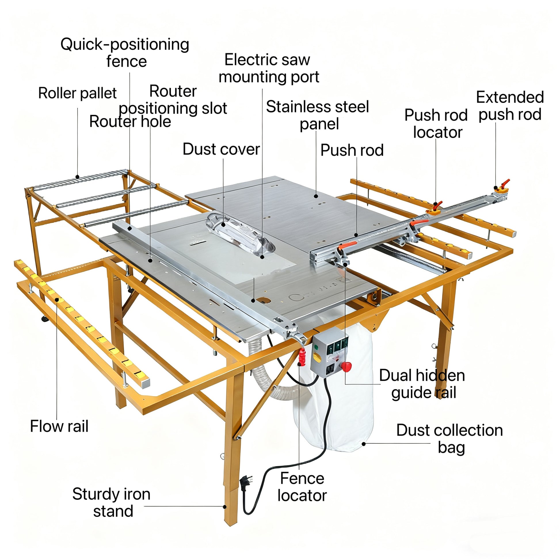 - Upgraded extendable push rod with dual-scale positioning on the table surface.